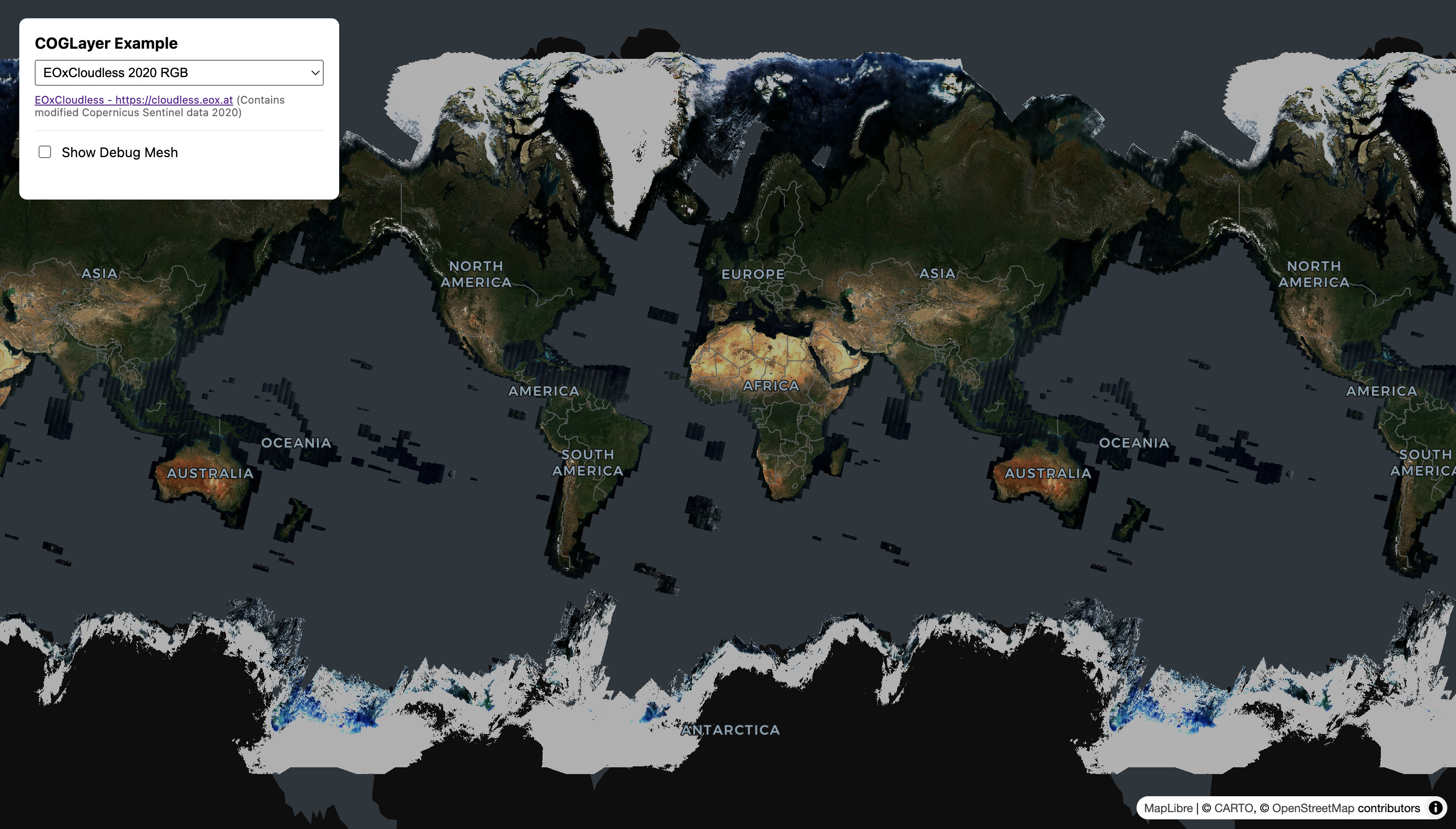 This is mostly useful when viewing global imagery in EPSG:4326 projection, such as this screenshot of the RGB GeoTIFF example, selecting the image sample from EOxCloudless.
