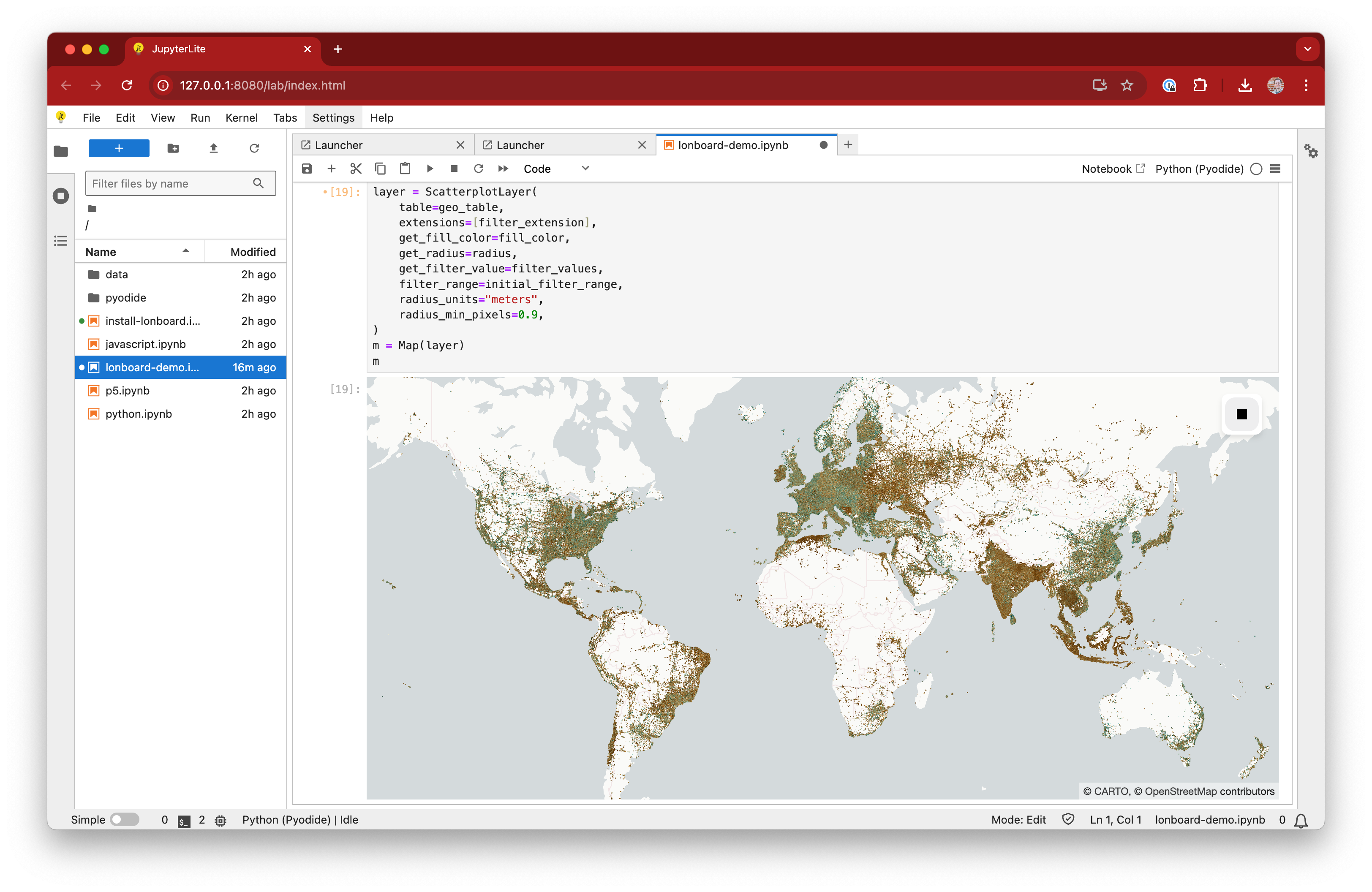 As of Lonboard version 0.10, it's possible to use Lonboard in Pyodide, where Python is running inside your web browser in WebAssembly.