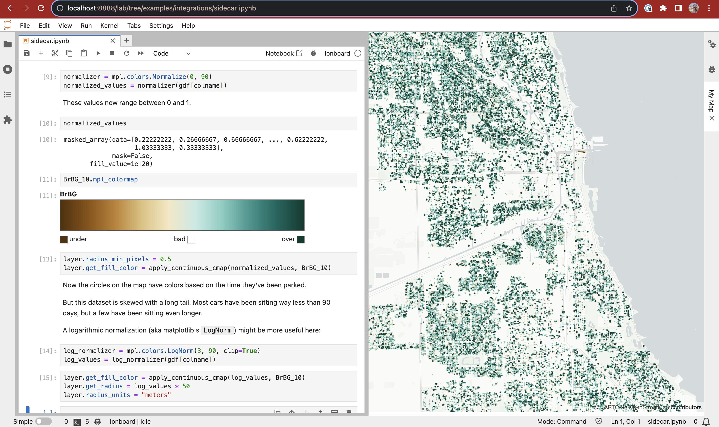 using ScatterplotLayerandJupyterLab Sidecar - MovingPandas