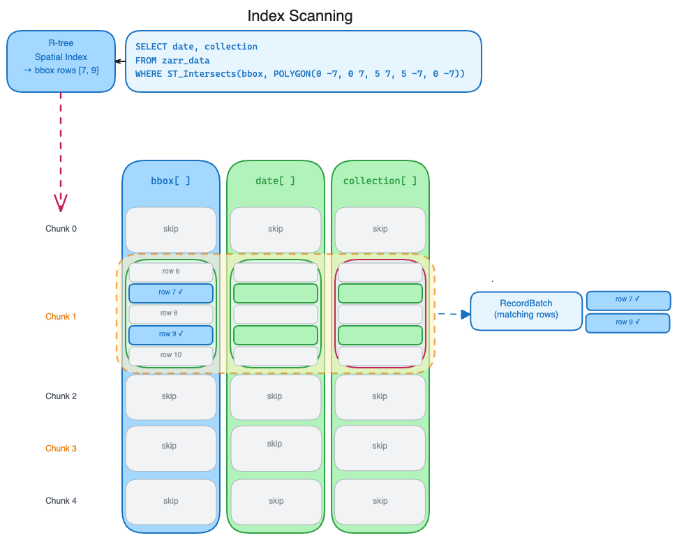 TableProvider fetches only the chunks for those rows and then only decodes